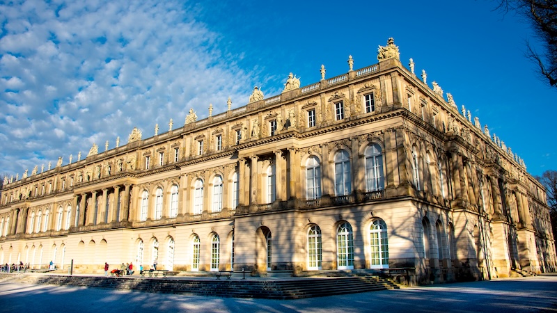 Sjön Chiemsee kallas ofta för ”bayerska havet”. En kort båttur tar oss till Herreninsel, den största av sjöns tre öar. Här ville ”sagokungen” Ludwig II skapa en kopia av Versailles, men vid hans tidiga bortgång var endast en slottsflygel färdig byggt. Dess stolthet är det långa spegelgalleriet och det pampiga trapphuset. En stor park omger slottet och här hittar vi flera andra sevärda byggnader.